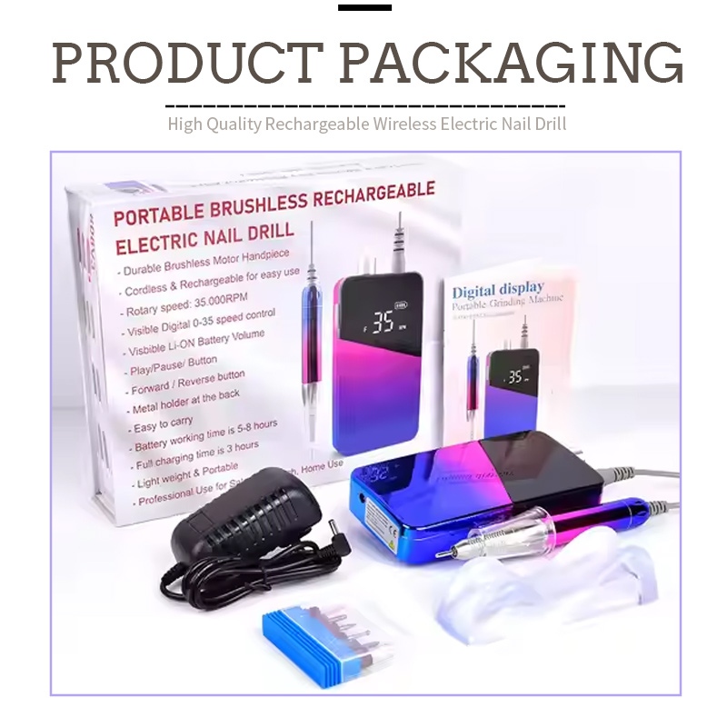 مجموعة مثقاب الأظافر الكهربائية الاحترافية 65 وات 35000 دورة في الدقيقة
