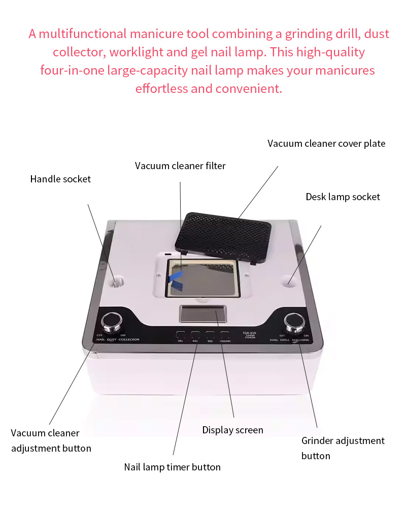 مصباح مجفف الأظافر، جامع الغبار 140 وات، 4 في 1