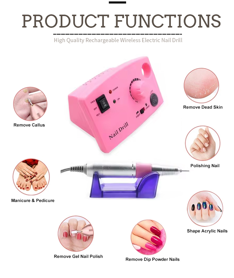 مجموعة مثقاب الأظافر الكهربائية المحمولة مع محرك قوي 65 وات 35000 دورة في الدقيقة