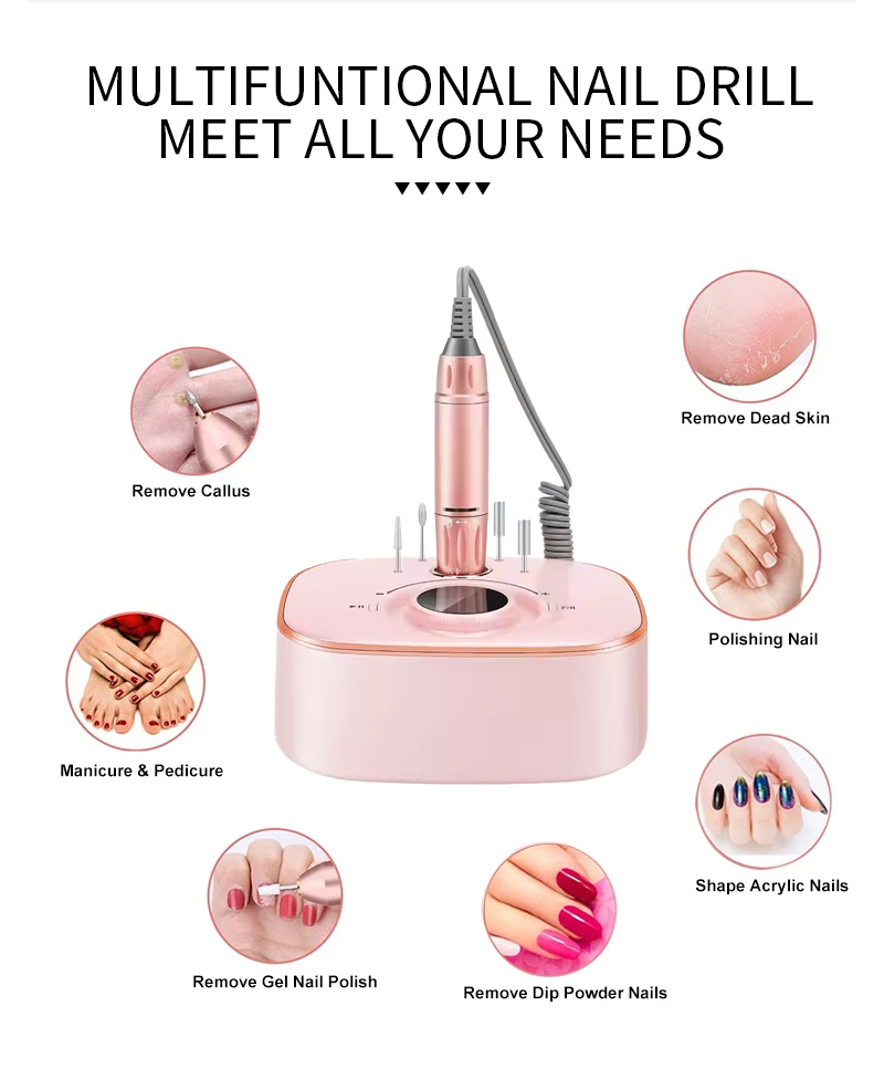 طقم مثقاب أظافر كهربائي لإزالة الغمس 65 وات 35000 دورة في الدقيقة