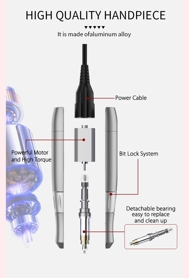 مجموعة مثقاب الأظافر الكهربائية المحمولة مع محرك قوي 65 وات 35000 دورة في الدقيقة