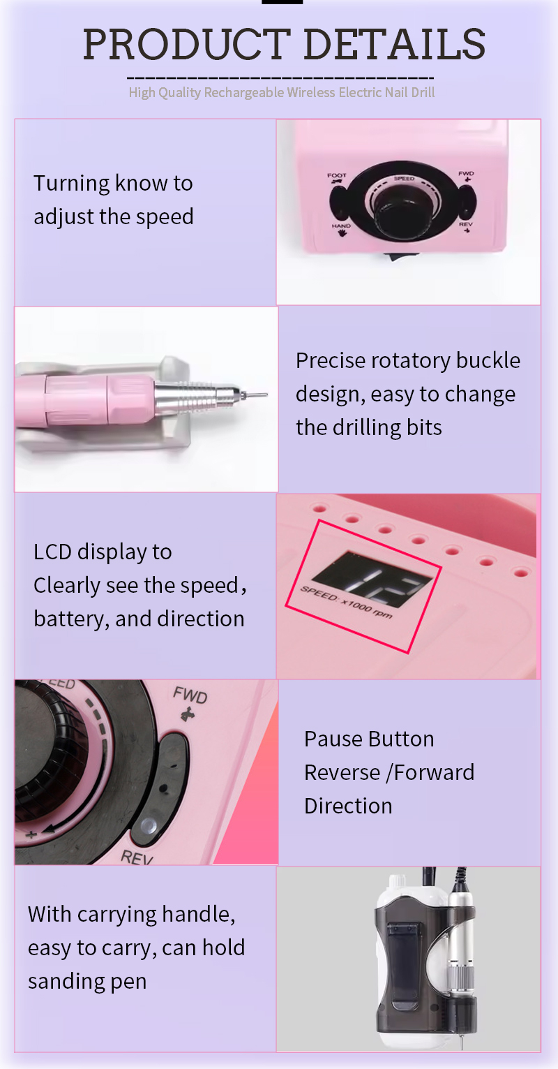 مجموعة مثقاب الأظافر الكهربائية المحمولة مع محرك قوي 65 وات 35000 دورة في الدقيقة