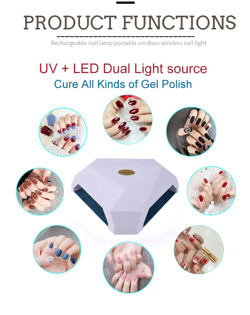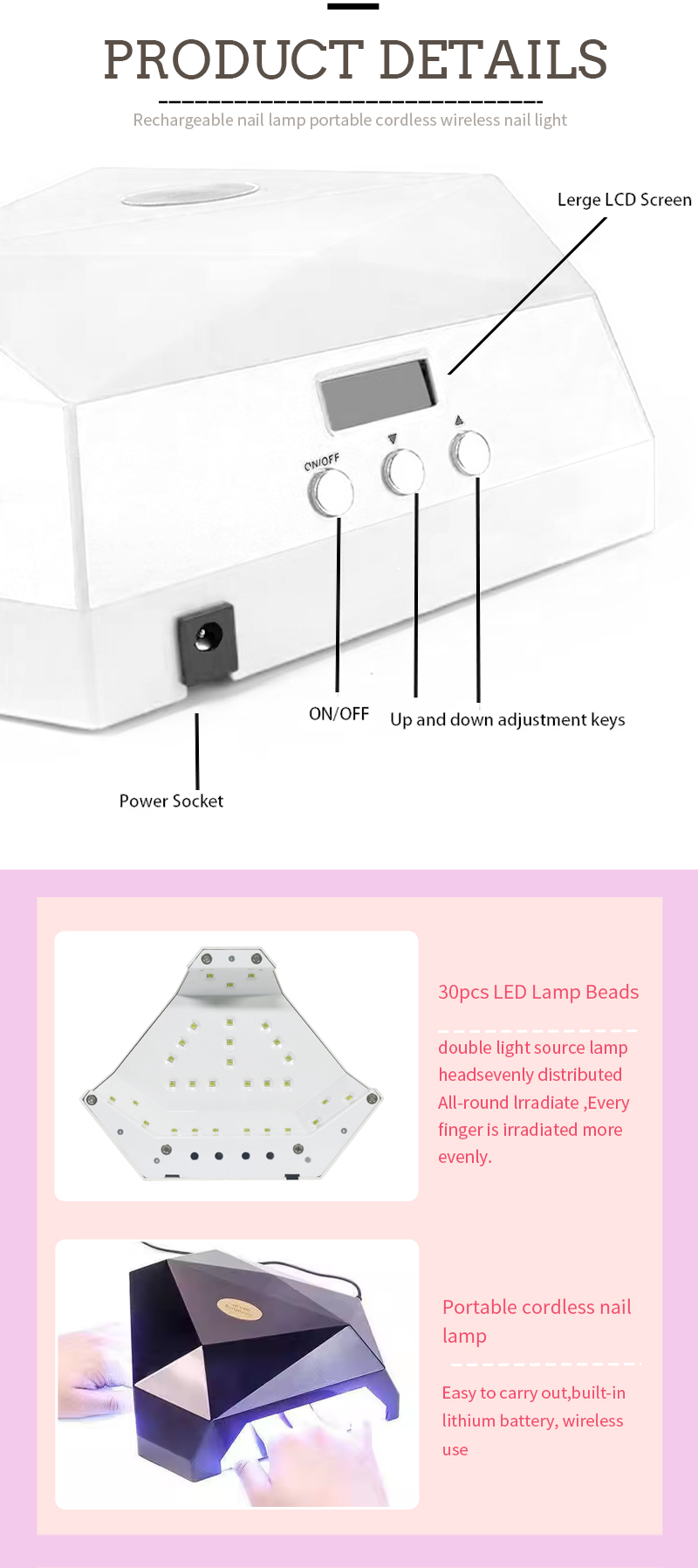 يضمن المنتج تجفيف الغراء بشكل متساوٍ دون انكماش. توفر مصادر الضوء المزدوجة تسخينًا لطيفًا لمنع تغير لون اليد وإجهاد العين، وهي مناسبة لكل من اليدين والقدمين، مما يوفر نتائج تجفيف سريعة بشكل ملحوظ.