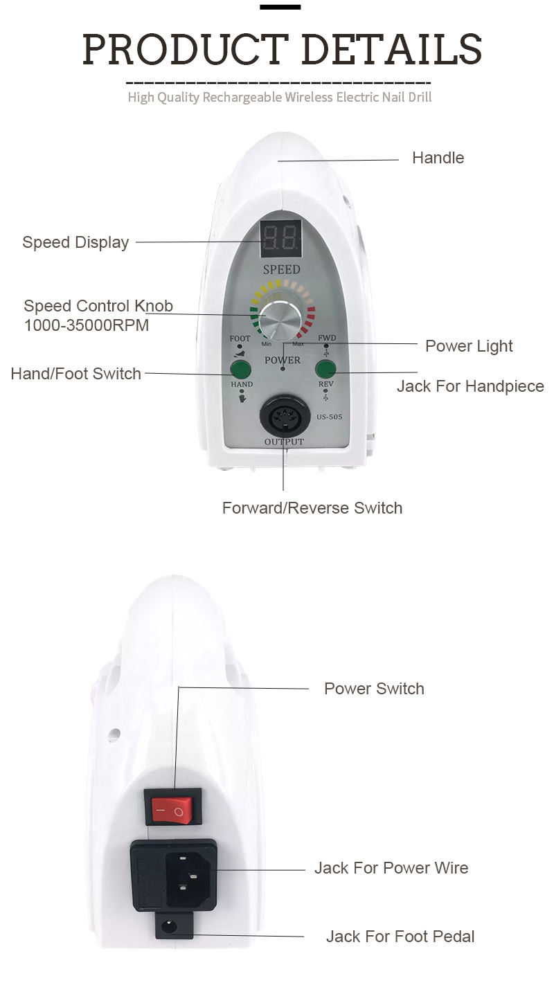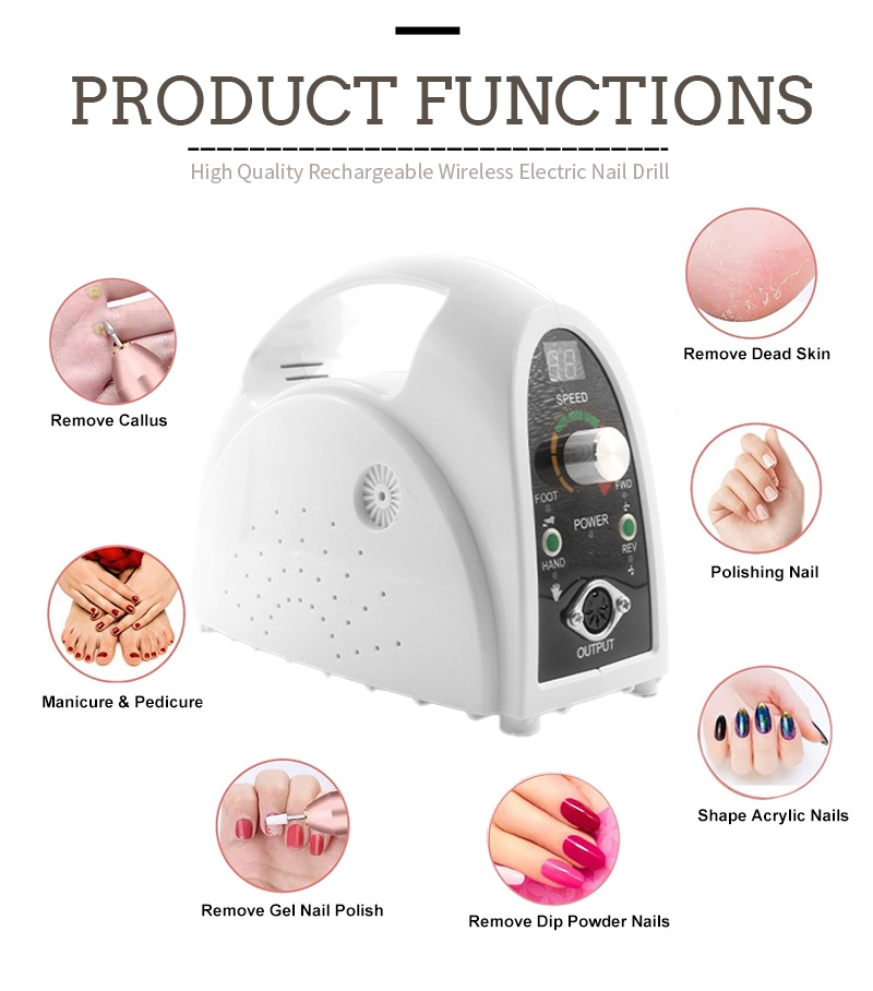 ميزة المنتج وتطبيق مبرد الأظافر الكهربائي 702 عالي السرعة 35000 دورة في الدقيقة لإزالة طلاء الأظافر