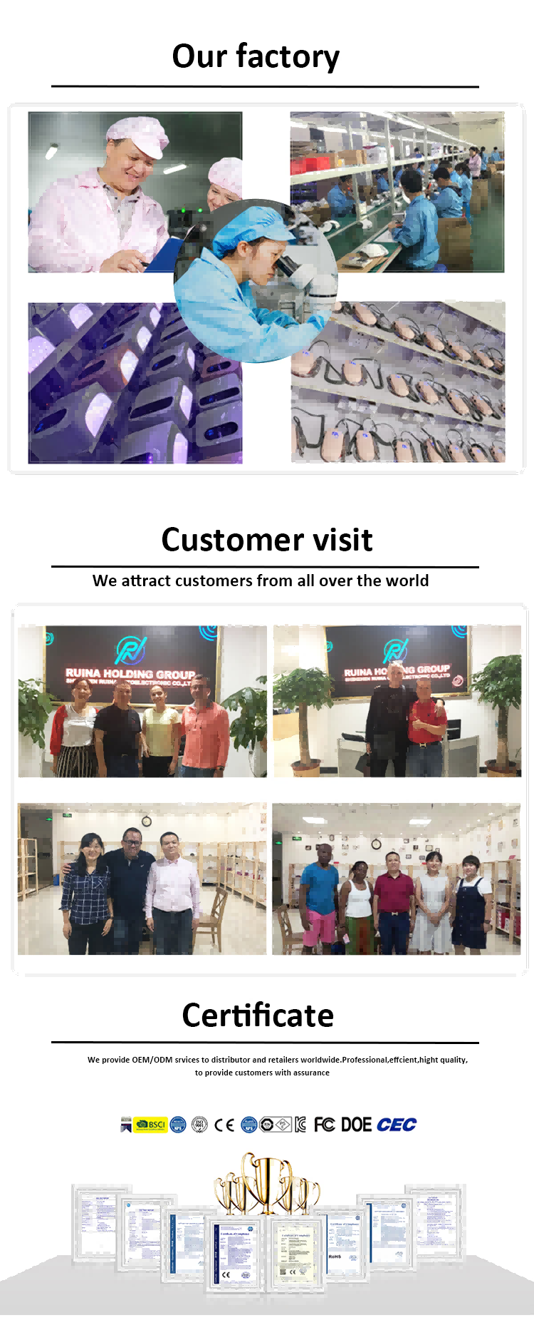نحن نقدم خدمات OEM/ODM للموزعين وتجار التجزئة العالميين. احترافية وفعالة وذات جودة متميزة، نحن نقدم ضمانات موثوقة لعملائنا.