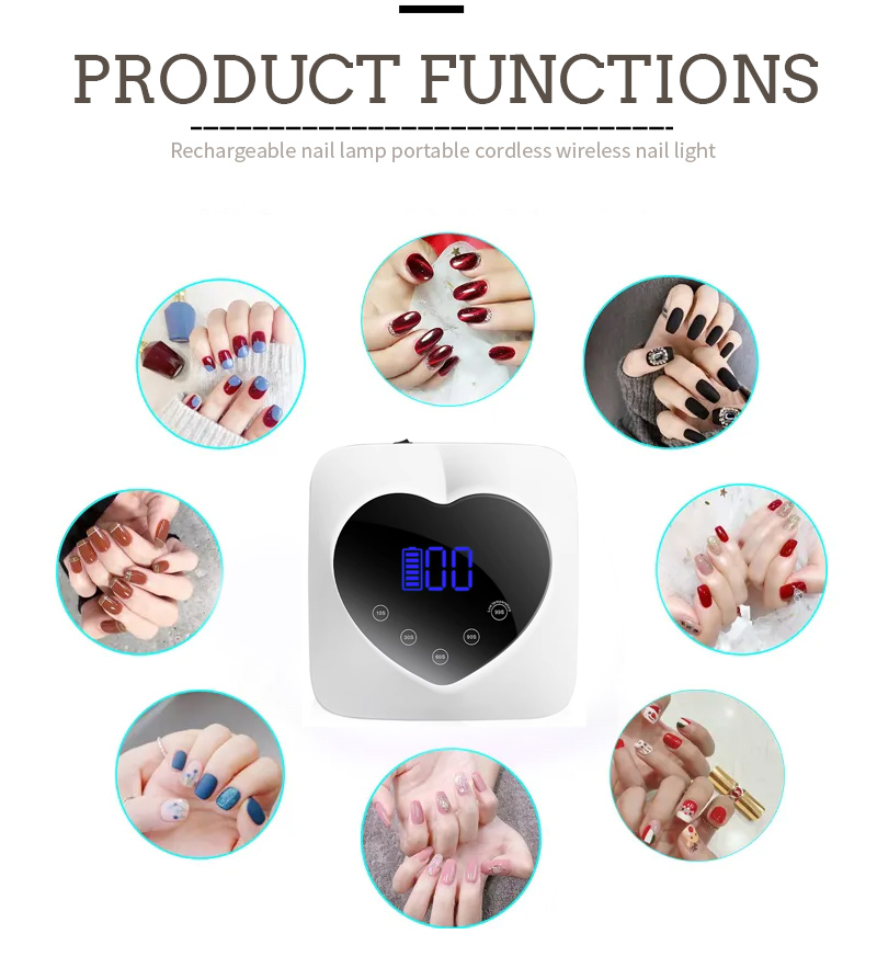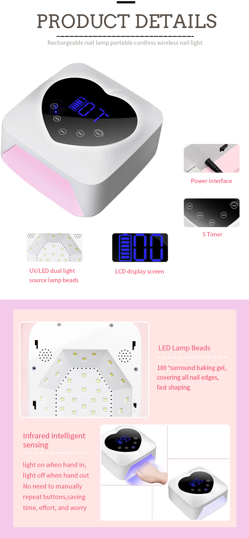 يضمن المنتج تجفيف الغراء بشكل متساوٍ دون انكماش. توفر مصادر الضوء المزدوجة تسخينًا لطيفًا لمنع تغير لون اليد وإجهاد العين، وهي مناسبة لكل من اليدين والقدمين، مما يوفر نتائج تجفيف سريعة بشكل ملحوظ.