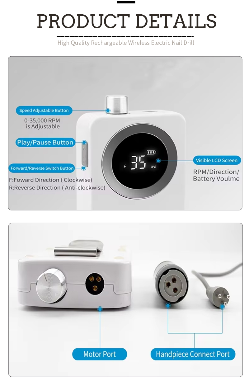 ميزات المنتج وتطبيقات مبرد الأظافر الكهربائي 808 عالي السرعة 35000 دورة في الدقيقة لإزالة طلاء الأظافر