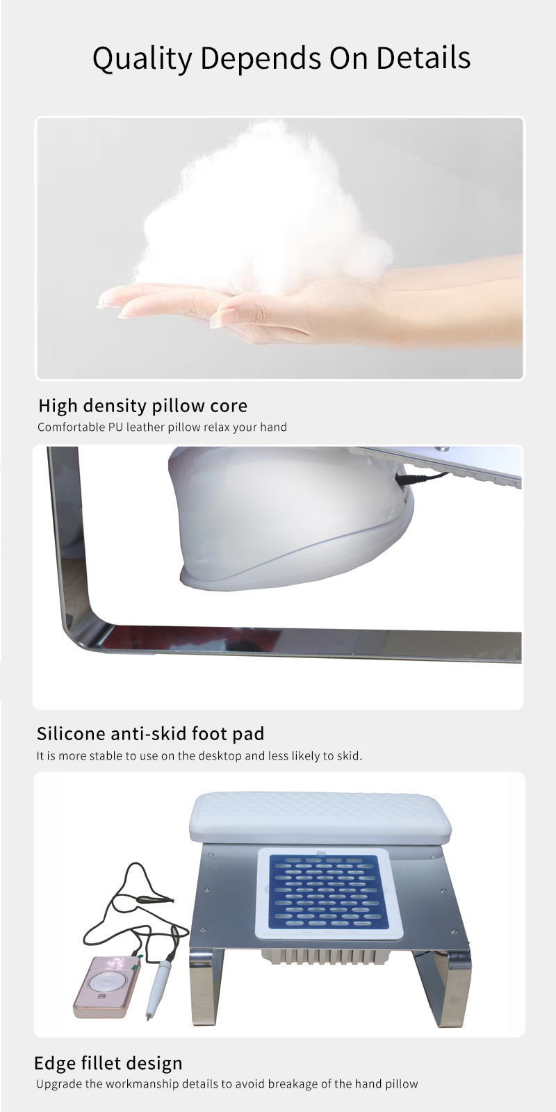 منتجات امتصاص قوي لبقايا الأظافر لا تسرب الغبار، وتحافظ على سطح الطاولة نظيفًا ومرتبًا، والمكنسة الكهربائية السريعة لا تسرب الغبار بقوة عالية أكثر كفاءة.