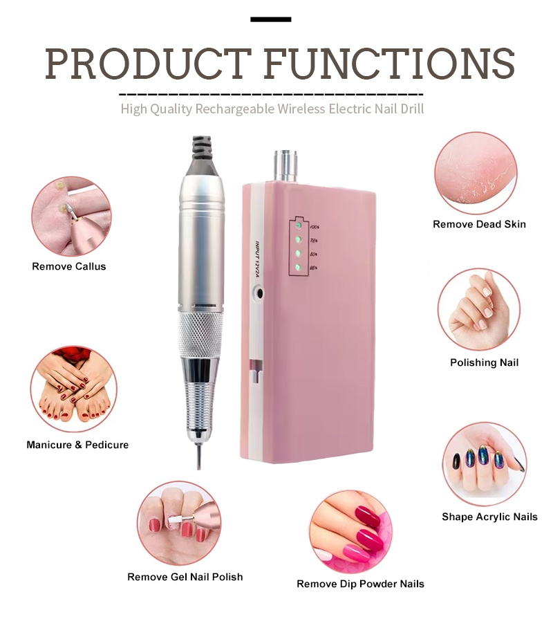 مجموعة مثقاب أظافر قابلة لإعادة الشحن، مثقاب أظافر على أصابع القدم، 35 وات، 35000 دورة في الدقيقة