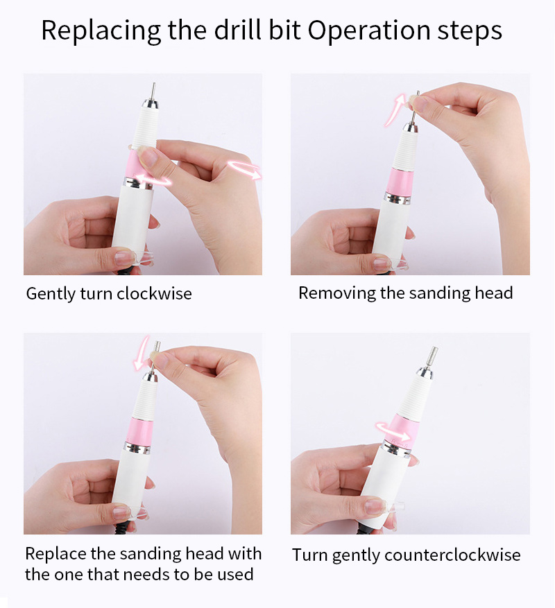 طقم مثقاب أظافر كهربائي لإزالة الغمس 65 وات 35000 دورة في الدقيقة