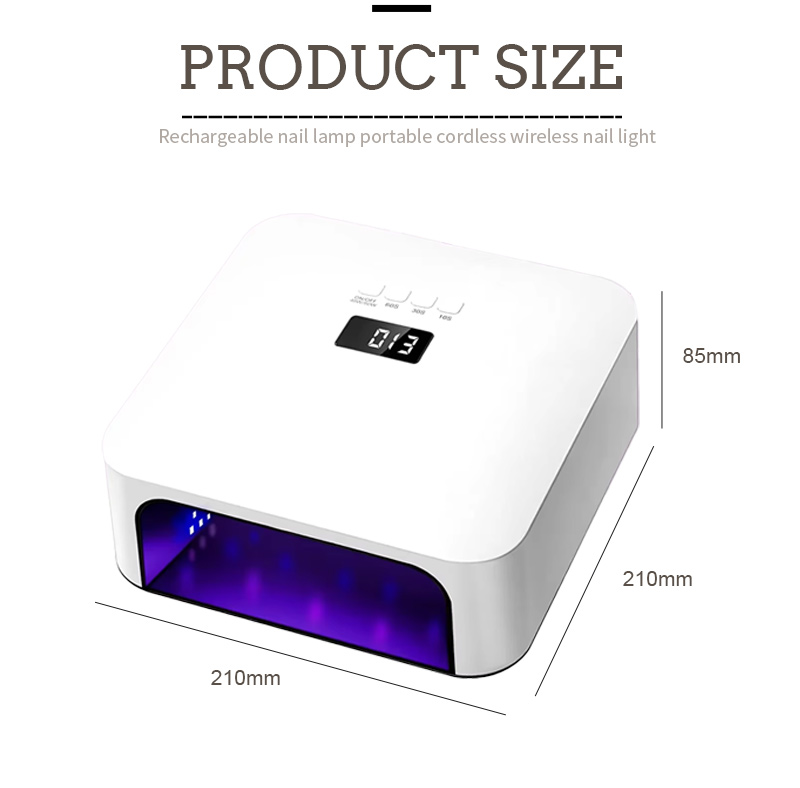 أبعاد مصباح تجفيف الأظافر السريع عالي الجودة هذا هي 210 ملم في الطول، 210 ملم في العرض و85 ملم في الارتفاع، مع سعة كبيرة والقدرة على استخدام اليدين والقدمين، وهو مريح للغاية.
