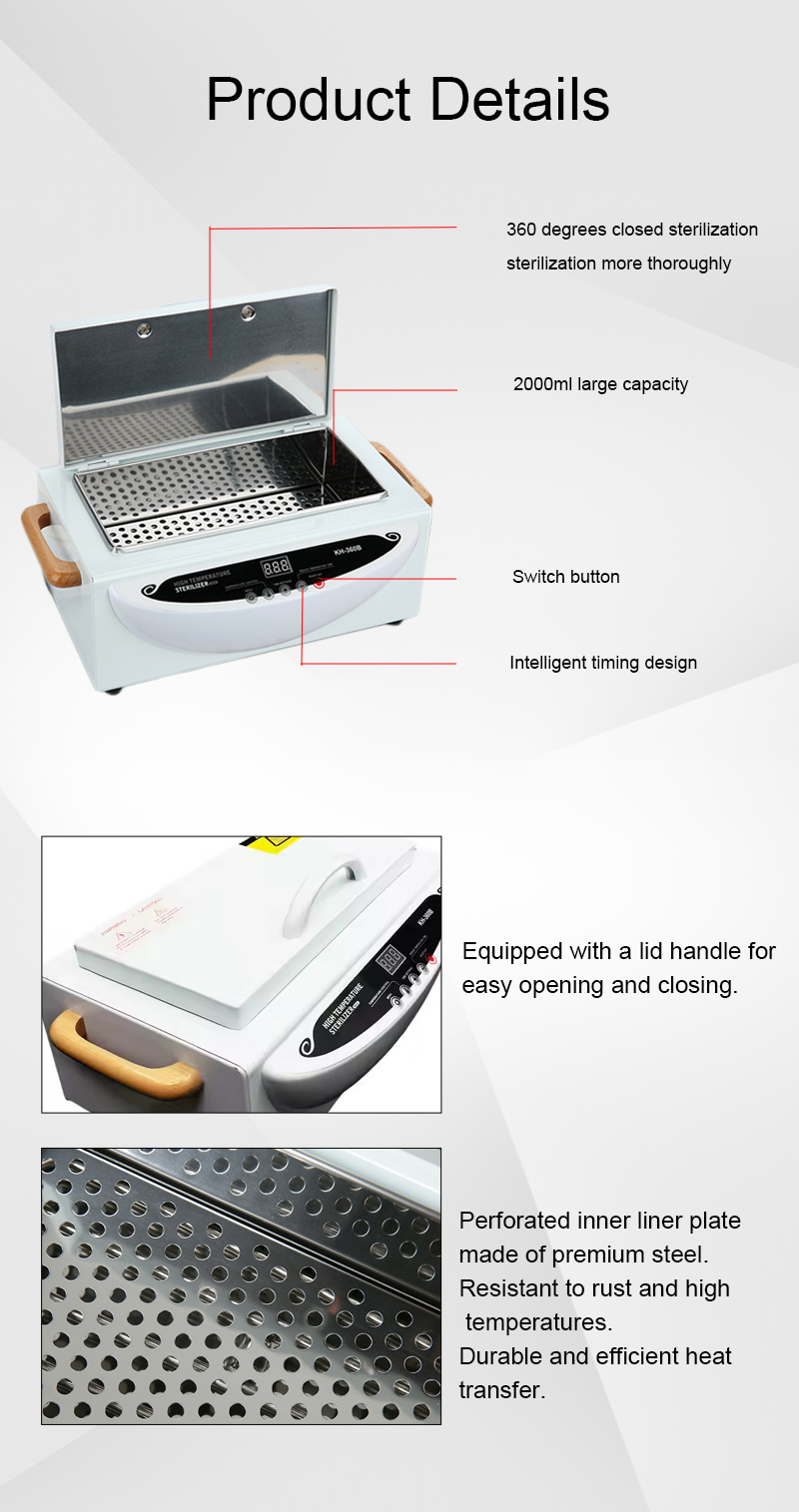 يقوم جهاز التعقيم هذا بشكل أساسي بتوليد الحرارة من خلال حلقة التسخين، وذلك باستخدام درجات الحرارة العالية للتطهير.