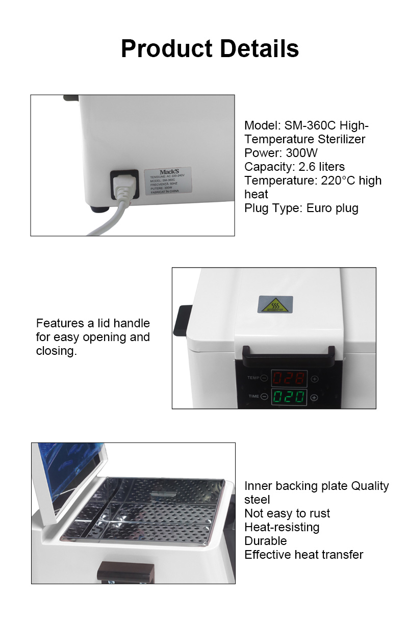 يقوم جهاز التعقيم هذا بشكل أساسي بتوليد الحرارة من خلال حلقة التسخين، وذلك باستخدام درجات الحرارة العالية للتطهير.