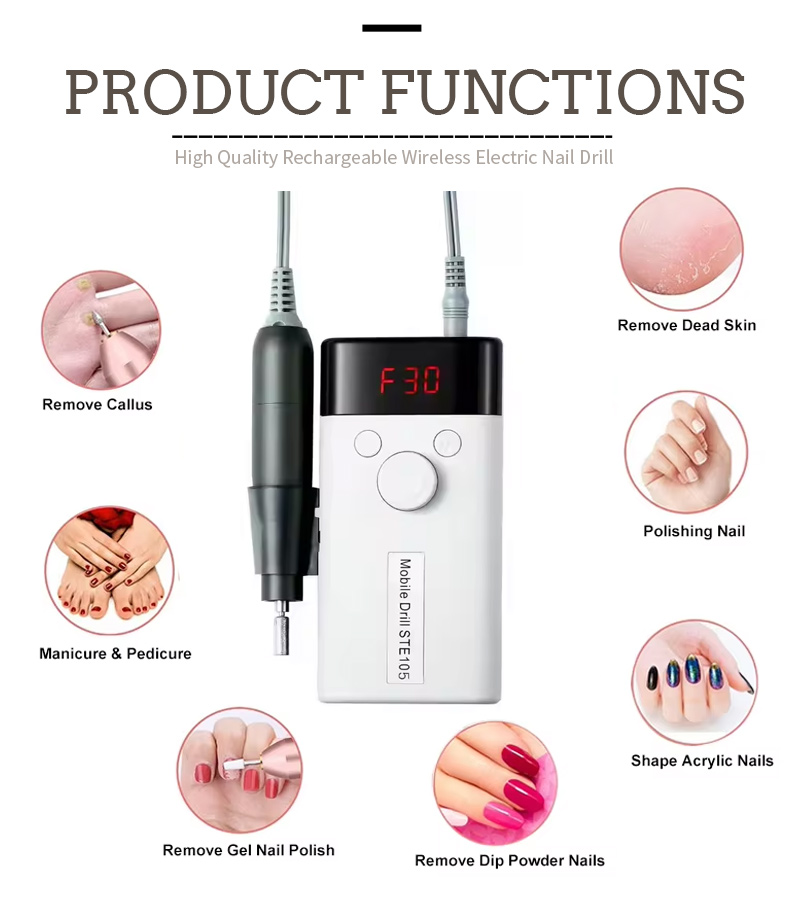 مجموعة مثقاب أظافر قابلة لإعادة الشحن، مثقاب أظافر على أصابع القدم، 35 وات، 35000 دورة في الدقيقة