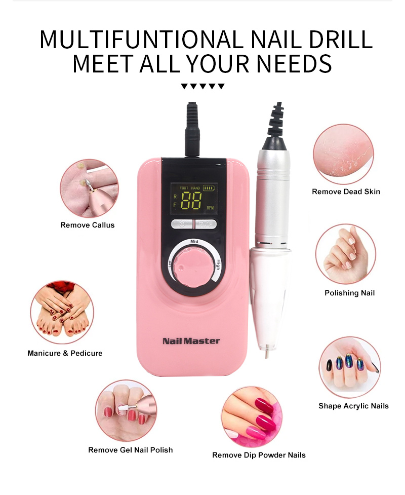 طقم مثقاب أظافر كهربائي أظافر طبيعية 25 وات 35000 دورة في الدقيقة