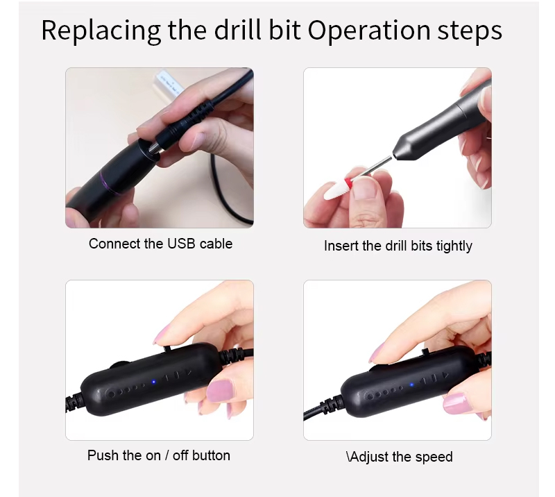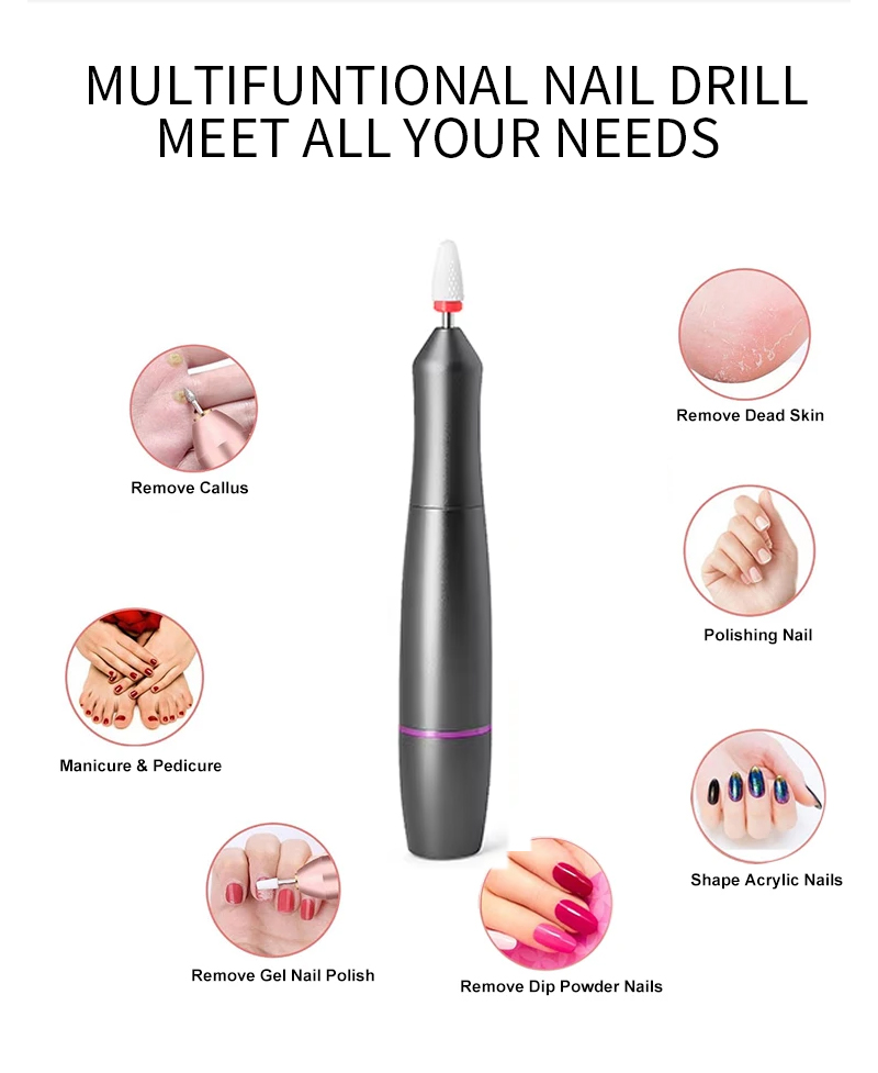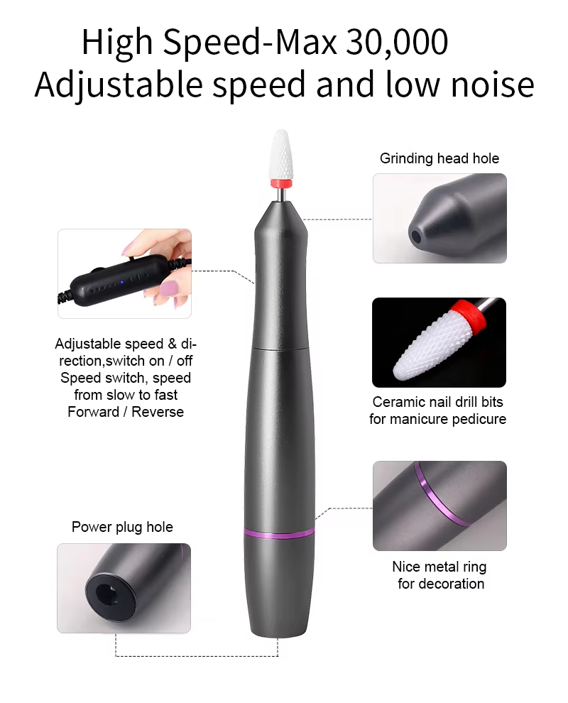 ميزة المنتج وتطبيق مثقاب فن الأظافر منخفض الضوضاء على شكل قلم
