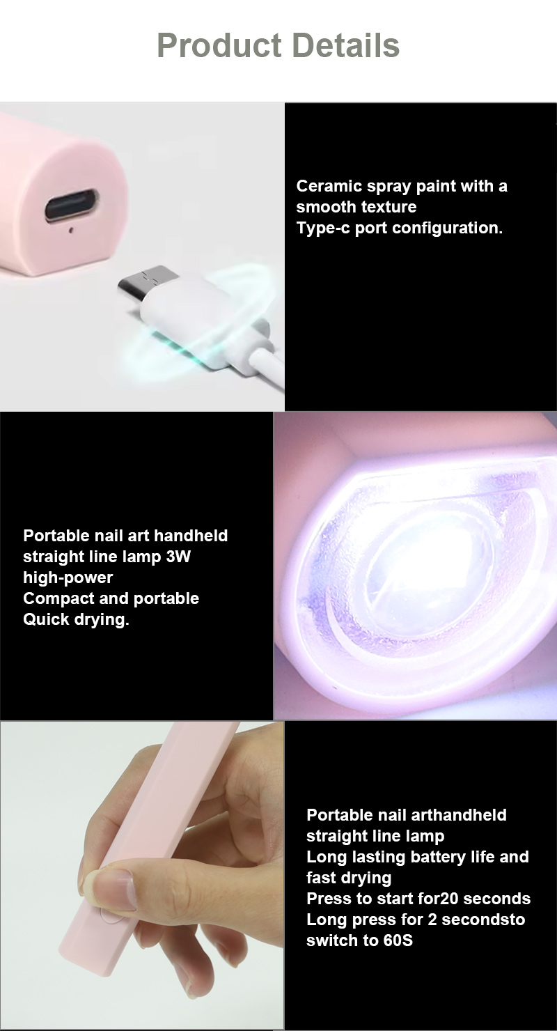 يضمن المنتج تجفيف الغراء بشكل متساوٍ دون انكماش. توفر مصادر الضوء المزدوجة تسخينًا لطيفًا لمنع تغير لون اليد وإجهاد العين، وهي مناسبة لكل من اليدين والقدمين، مما يوفر نتائج تجفيف سريعة بشكل ملحوظ.