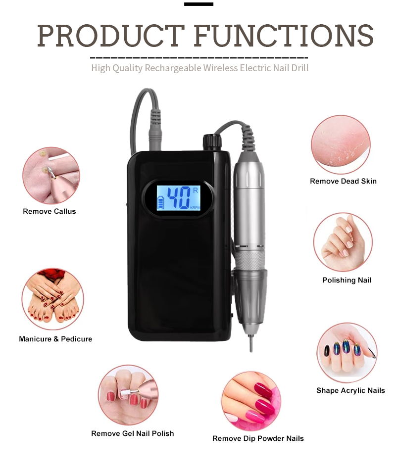 ميزات المنتج وتطبيقات مبرد الأظافر الكهربائي K91 عالي السرعة 40,000 دورة في الدقيقة لإزالة طلاء الأظافر