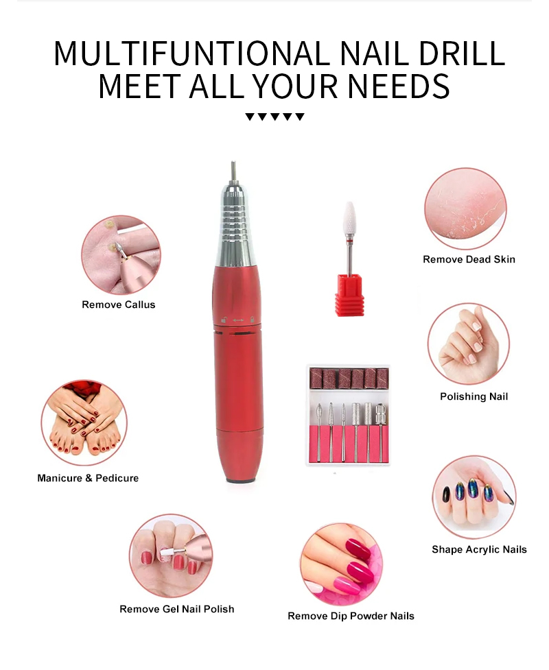 طقم مثقاب أظافر كهربائي لإزالة الغمس 65 وات 35000 دورة في الدقيقة