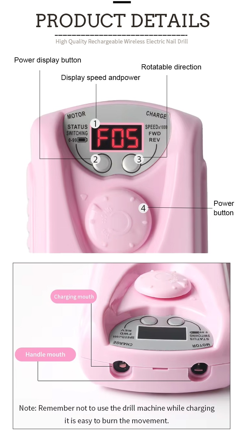 | تفاصيل مثقاب الأظافر الكهربائي اللاسلكي الاحترافي |