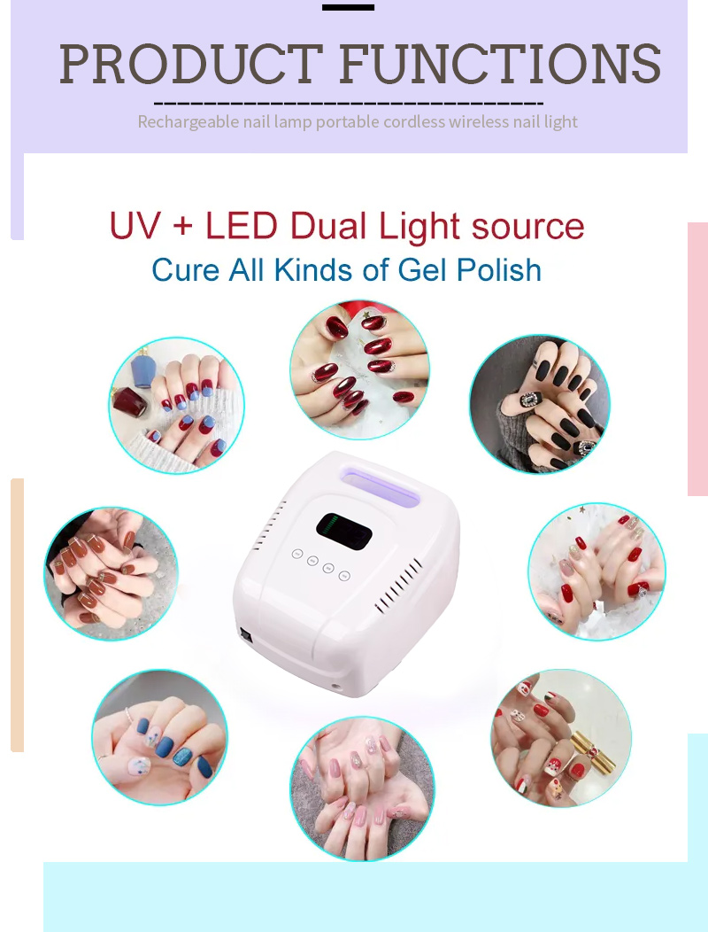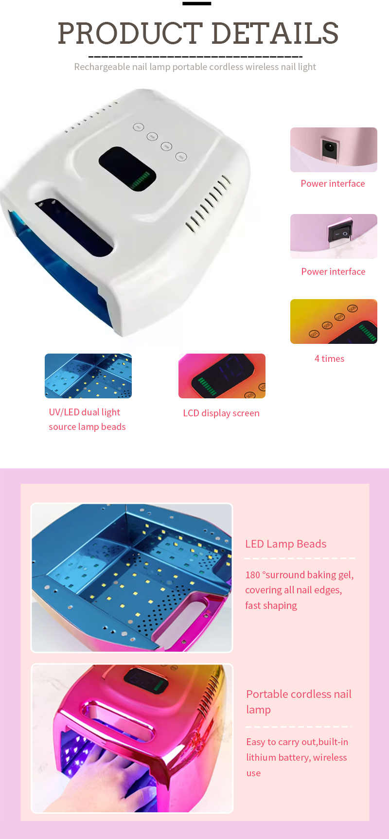 مصباح جل لتجفيف الأظافر قابل لإعادة الشحن بقوة 96 وات