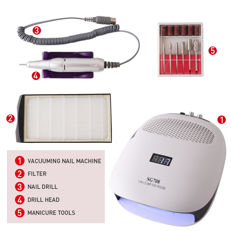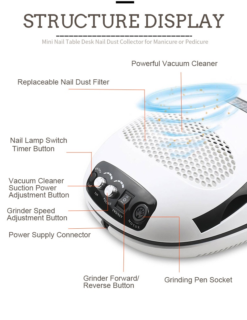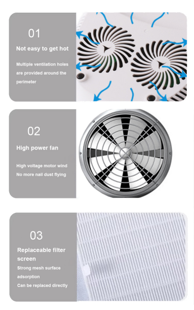مصباح مجفف الأظافر، جامع الغبار 140 وات، 4 في 1