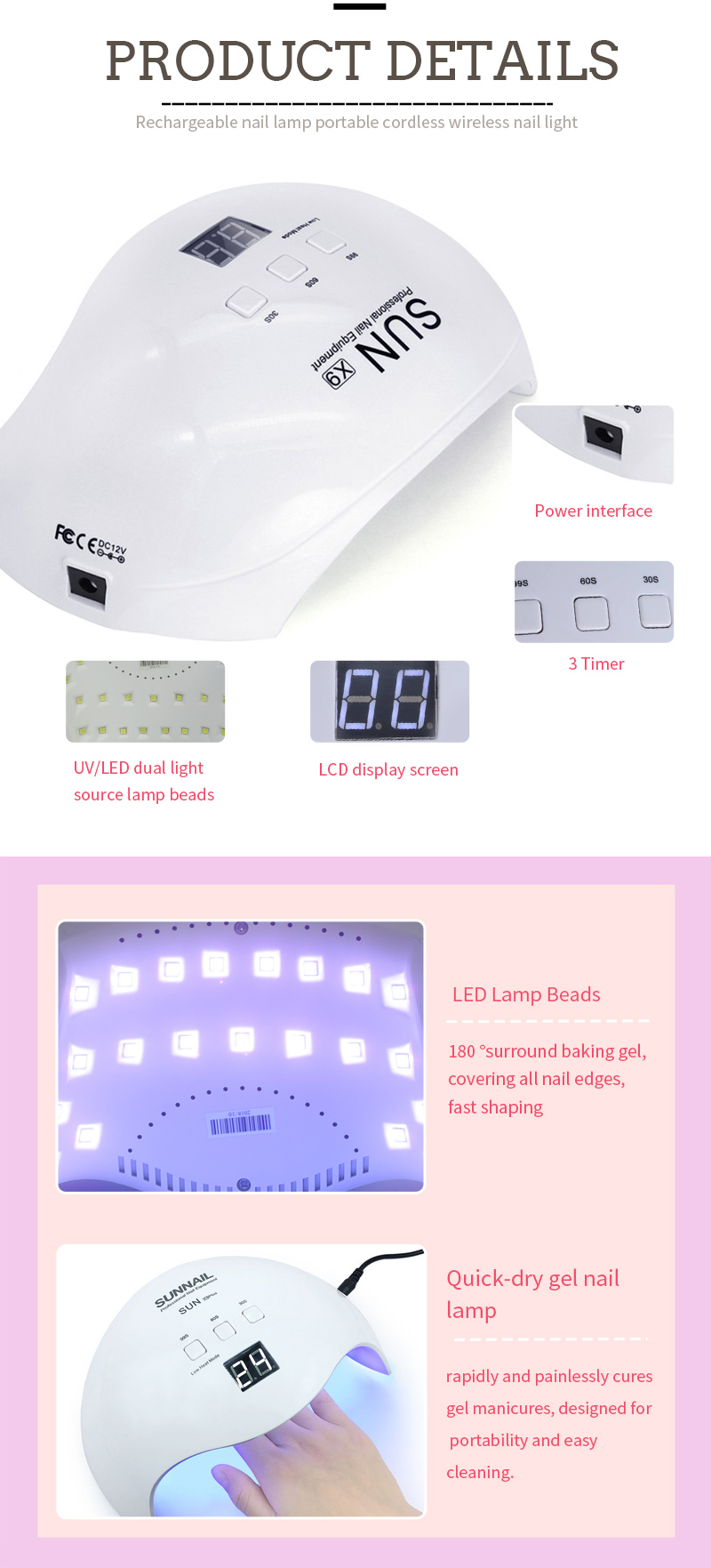 مصباح جل لتجفيف الأظافر قابل لإعادة الشحن بقوة 96 وات